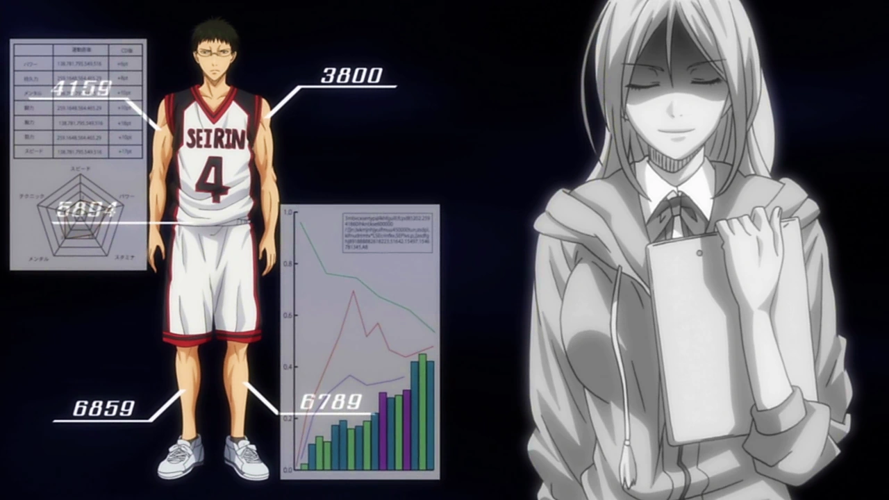 Momoi has been the manager of a basketball team since Junior High school, maybe even before that. Because of this, she has a lot of experience with basketball and loves the sport very much. As the manager, she scouts other teams and reviews their playing patterns. She is able to analyze every ability of every player and can foresee their moves. As commented on by Riko, she is an expert in data-collection and resembles a spy.[54] She then delivers the information to her players and then they are able to read their opponents' moves. So far, the only players that she couldn't successfully predict or see their inner talent are Kuroko and Mayuzumi because of their lack of presence.