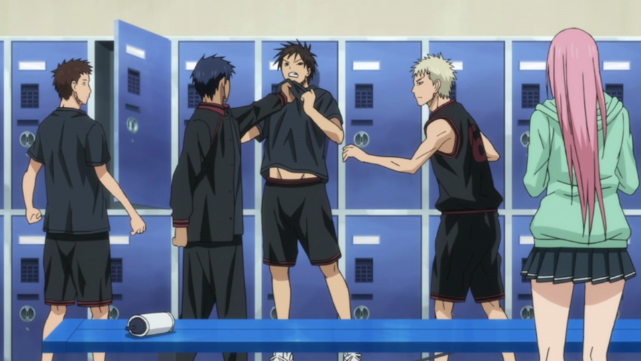 When they first saw Momoi, they are attracted to her, to say the least. They are often caught oozing on her, after which they are punished by Riko, who is irritated by Momoi's beauty and attitude. The difference between Momoi and Riko's cup size is more than often noted. When Momoi clings to Kuroko, her crush, the entire team is engulfed with jealousy.